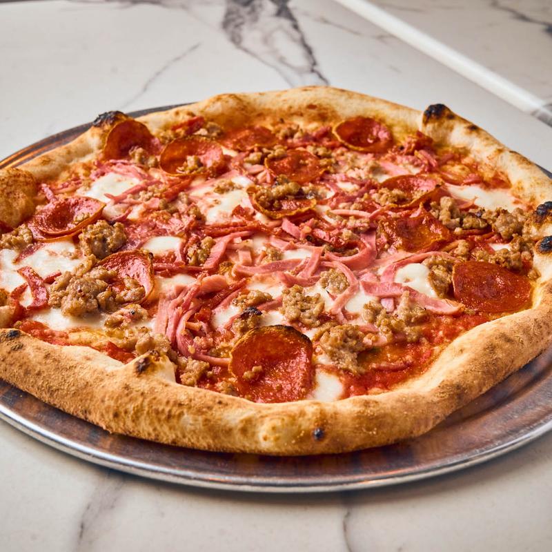 San Marzano tomatoes, fresh mozzarella, sausage, spicy salami, pepperoni, sweet salami, and Cotto ham.